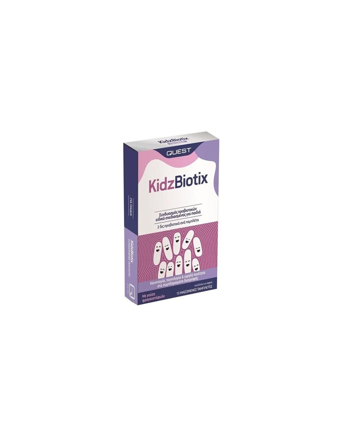 Το KidzBiotix της Quest είναι ένα προβιοτικό συμπλήρωμα διατροφής σε μασώμενη μορφή που έχει σχεδιαστεί ειδικά για την καλή λειτουργία του παιδικού εντέρου.
