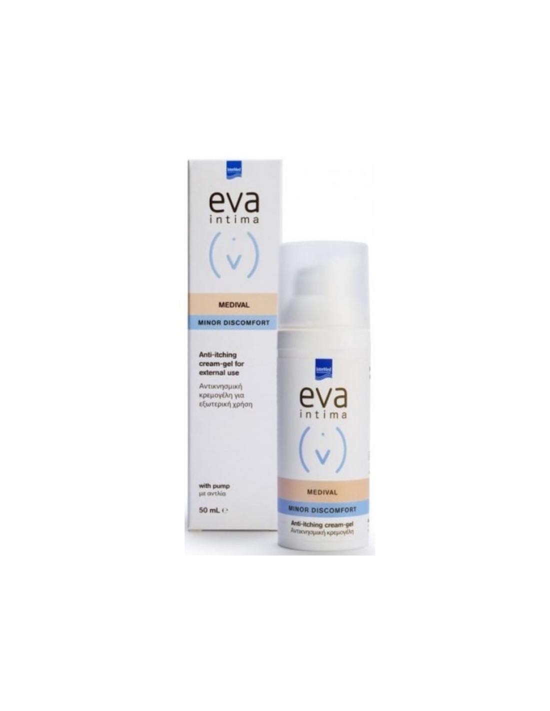 Η Eva Intima Medival είναι μια υδατοδιαλυτή κρεμογέλη που έχει δημιουργηθεί για να προσφέρει αποτελεσματική βοήθεια στην αντιμετώπιση του κνησμού και τoυ καύσου στα εξωτερικά γεννητικά όργανα της γυναίκας που οφείλονται σε συνήθεις παθολογικές και μη καταστάσεις όπως: αυξημένη εφίδρωση, άσκηση, σερβιετάκια, μαγιώ, συνθετικά εσώρουχα, στενά ρούχα, διάφορες δερματοπάθειες, αιδoιοκολπική ατροφία.