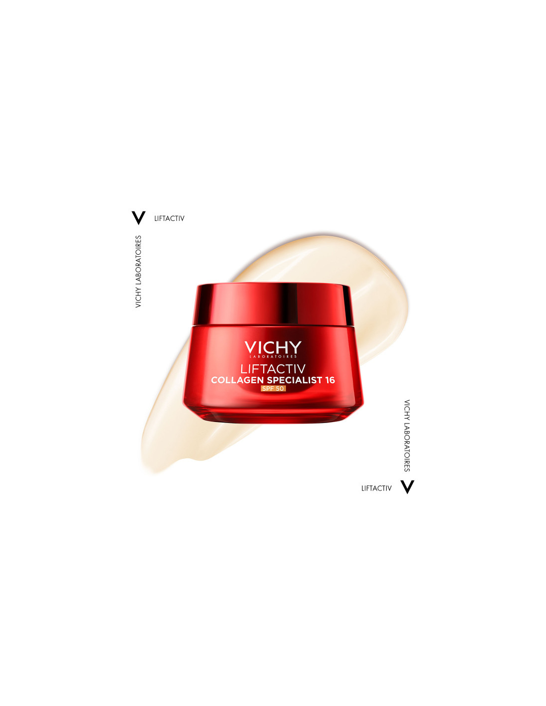 Liftactiv Collagen Specialist 16 Day Cream is the first and only cream with Co-Bonding Technology (Rhamnose, Peptides, Maitake) that strengthens and connects all types of collagen in the skin (1), correcting 16 signs of aging (2) and with very high sun protection SPF50.