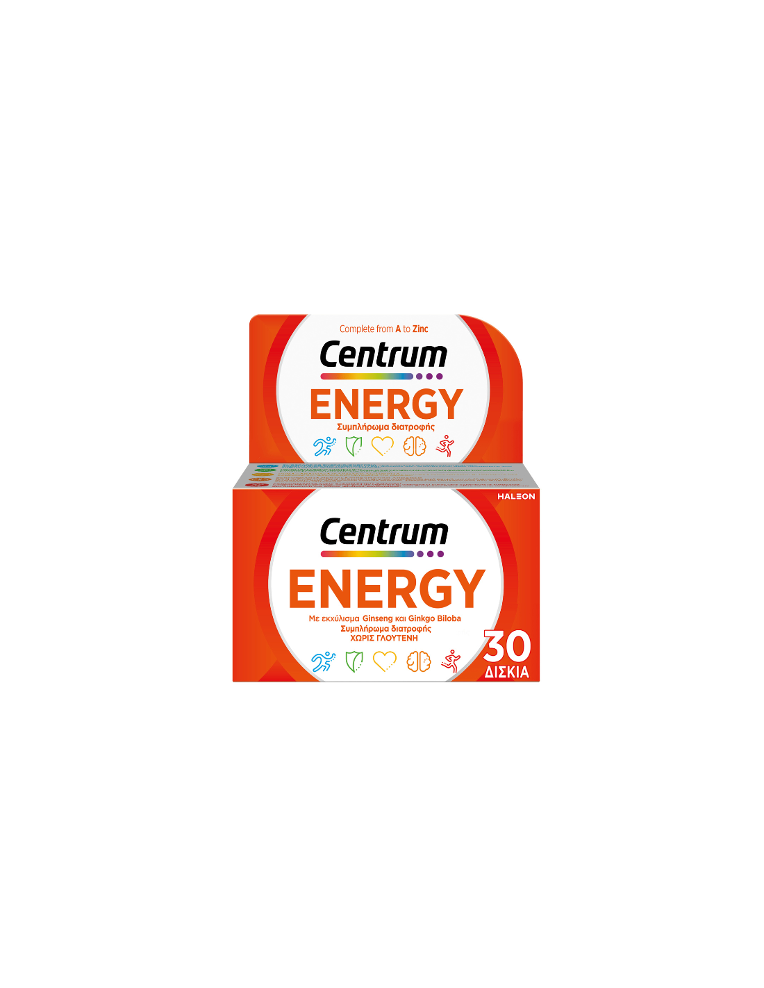 Centrum Energy is a nutritional supplement containing vitamins, minerals, Ginseng and Ginkgo Biloba to provide energy and enhance physical & mental performance.