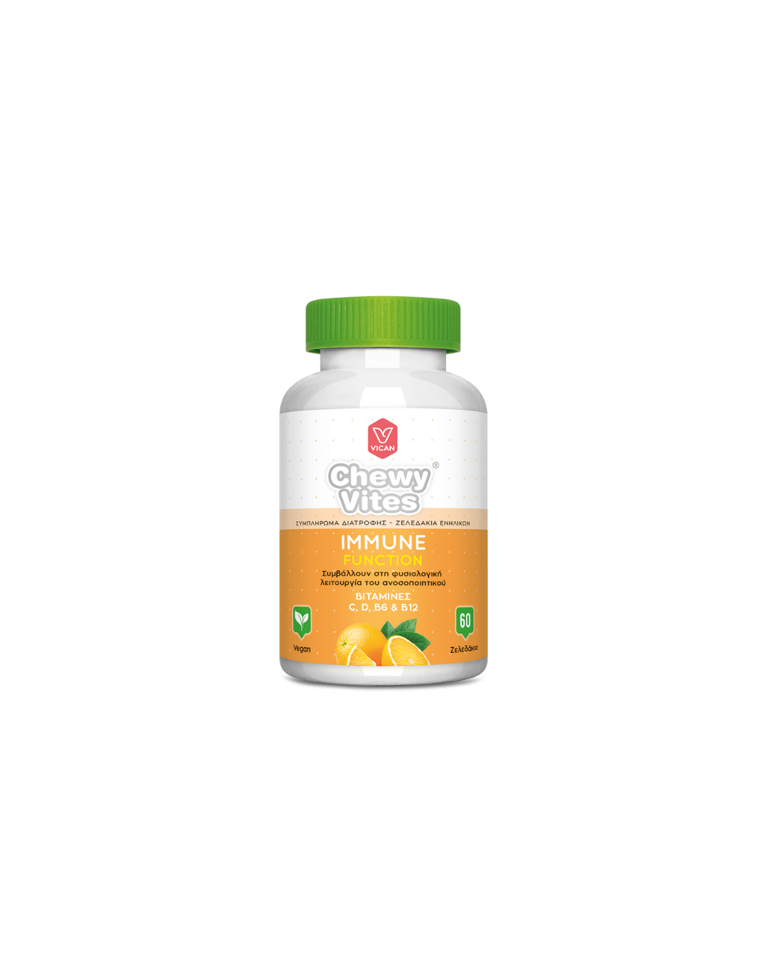 Chewy Vites IMMUNE FUNCTION with vitamin C contains 6 important vitamins and minerals for the body: Vitamin C, Vitamin D, Vitamin B6, Vitamin B12, zinc and selenium, all
